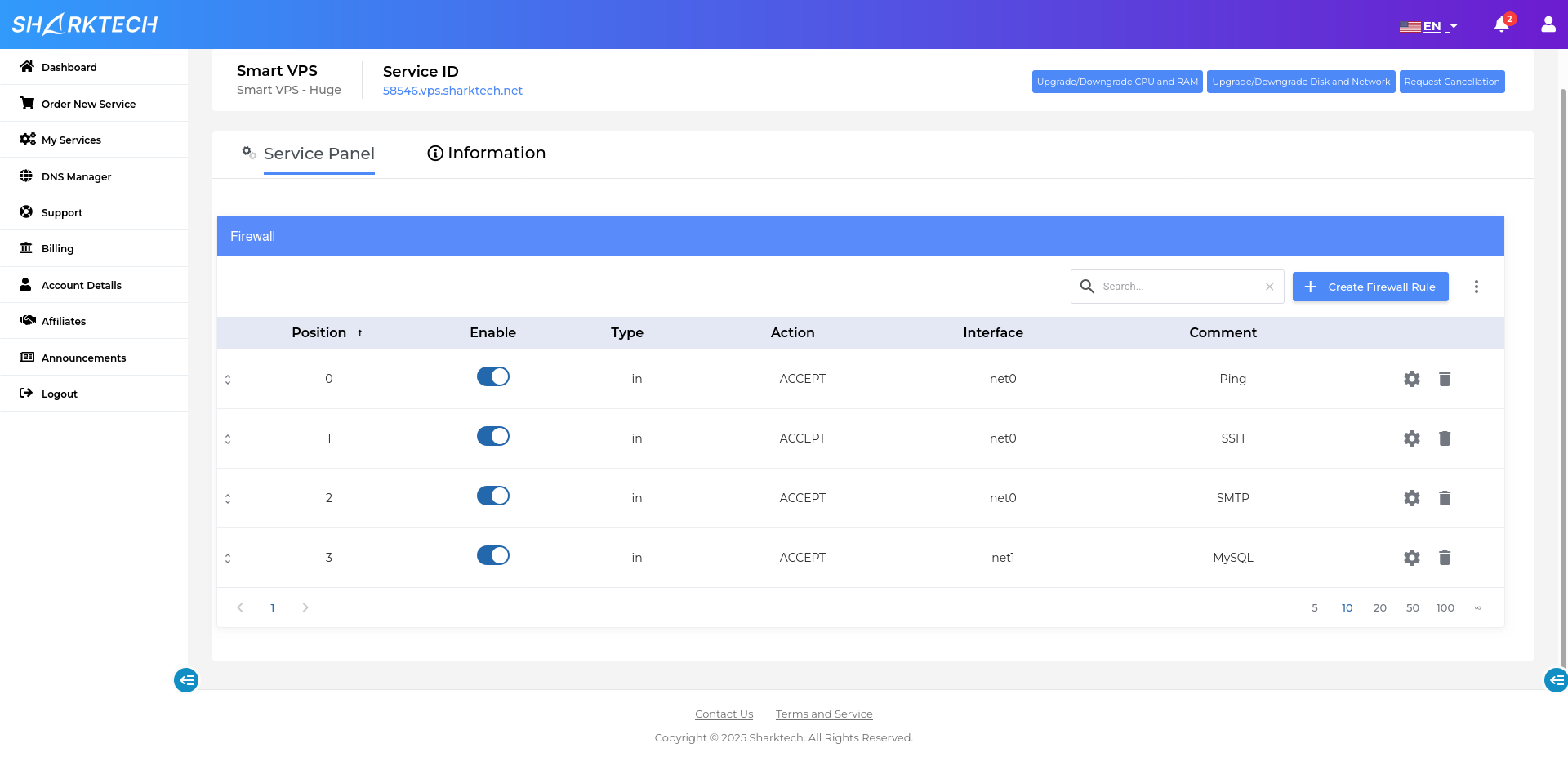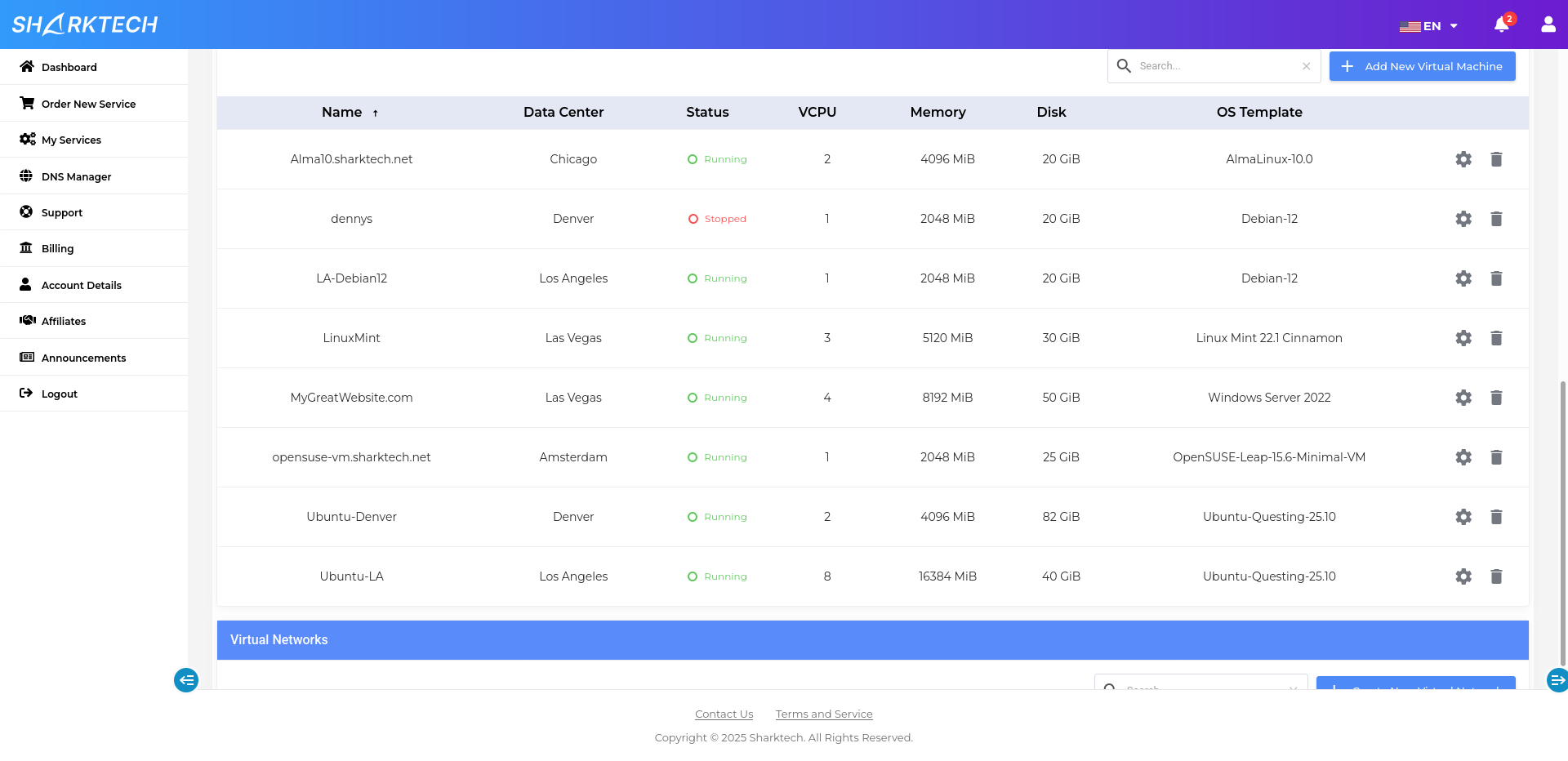 Smart VPS VMs are hosted on highly available and redundant Proxmox clusters with 40G interconnects in all Sharktech locations. You can choose the location for your VMs during the VM creation process.